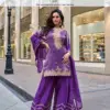 Details Pure Viscos Simar Jacquard Silk Full Heavy Look Viscos Simar Embroidered Top With Embroidered Plazzo Sharara And Dupatta